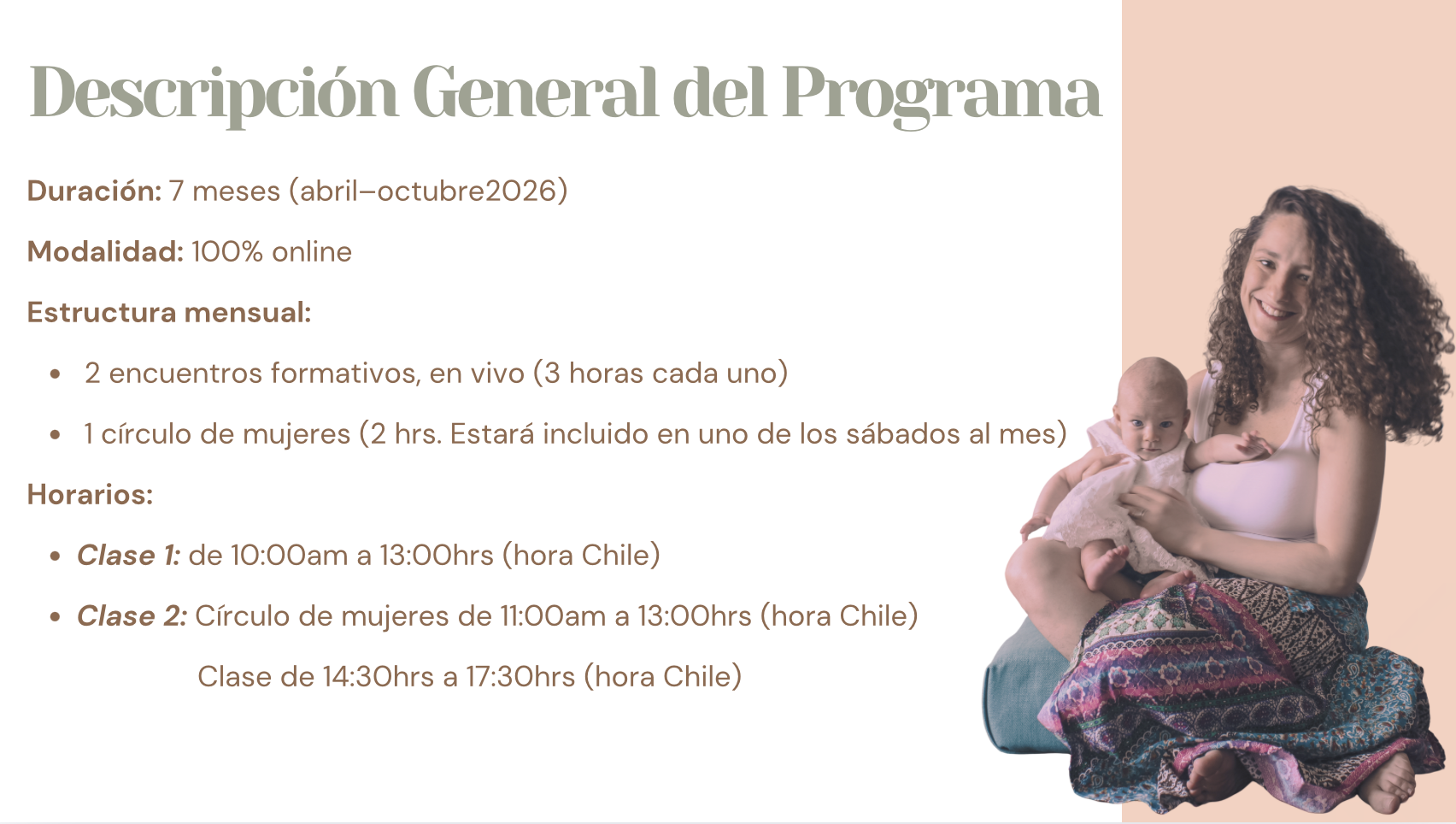 Este programa no entrega certificación instutucional, si un diploma de participación. Está inspirado en la visión de Michel Odent: lo escencial no es el título, sino la calidad humana, la presencia y el conocimiento encarnado.