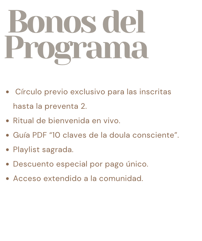 -Circulo previo exclusivo para las inscritas hasta la preventa 2.